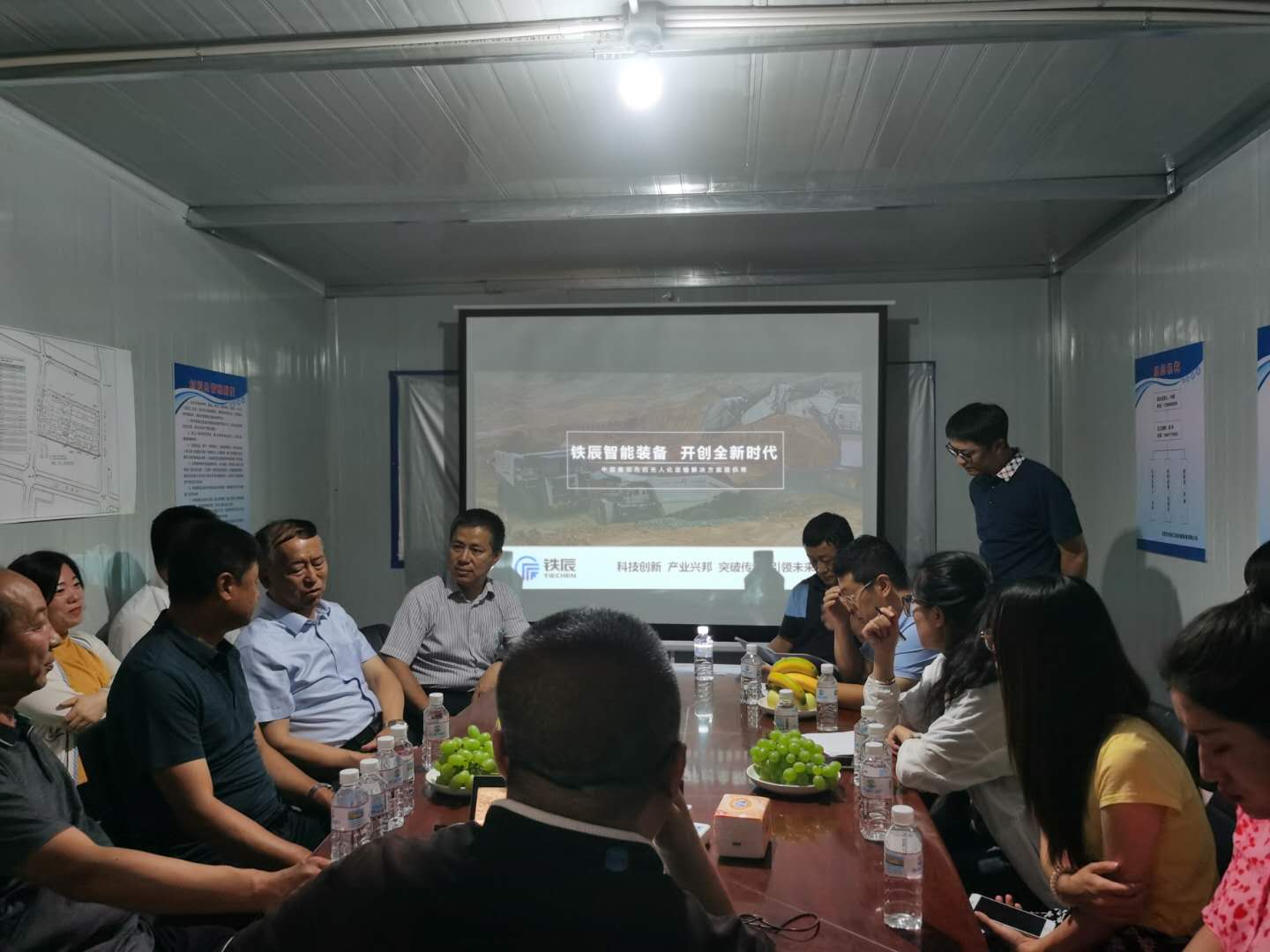 調(diào)研組認(rèn)真聽取了鐵辰公司的整體項(xiàng)目規(guī)劃包括項(xiàng)目建設(shè)背景、產(chǎn)業(yè)發(fā)展路徑、技術(shù)優(yōu)勢(shì)、發(fā)展前景、經(jīng)濟(jì)效益評(píng)估及詳細(xì)的項(xiàng)目建設(shè)時(shí)間表等基本情況的匯報(bào),并饒有興趣地觀看了無人駕駛技術(shù)在相關(guān)礦區(qū)的實(shí)景操作及編組作業(yè)視頻。鐵辰項(xiàng)目的高科技定位以及致力于改變傳統(tǒng)礦山開發(fā)模式的宏偉愿景引起了調(diào)研組領(lǐng)導(dǎo)的強(qiáng)烈興趣,他們不斷詢問鐵辰無人駕駛礦用車的設(shè)計(jì)理念、技術(shù)支撐、應(yīng)用范圍、整車造價(jià)、傳統(tǒng)車改裝以及未來投放市場(chǎng)后的經(jīng)濟(jì)和社會(huì)效益等核心問題,對(duì)于鐵辰項(xiàng)目的整體定位及項(xiàng)目建設(shè)進(jìn)度給予了高度評(píng)價(jià)。雖然氣候炎熱,項(xiàng)目工地?zé)崂朔瓭L,但卻絲毫沒有阻擋調(diào)研組領(lǐng)導(dǎo)的熱情。調(diào)研結(jié)束后,相關(guān)領(lǐng)導(dǎo)對(duì)鐵辰項(xiàng)目的實(shí)施進(jìn)度、工程質(zhì)量控制、工期計(jì)劃等進(jìn)行了反復(fù)了解和確認(rèn),最后希望鐵辰公司能夠堅(jiān)持自主創(chuàng)新,加強(qiáng)成本控制,搶占市場(chǎng)先機(jī),提升行業(yè)地位,為推動(dòng)鄂爾多斯地區(qū)經(jīng)濟(jì)發(fā)展和“智慧礦山、綠色礦山”事業(yè)做出更大的貢獻(xiàn)。