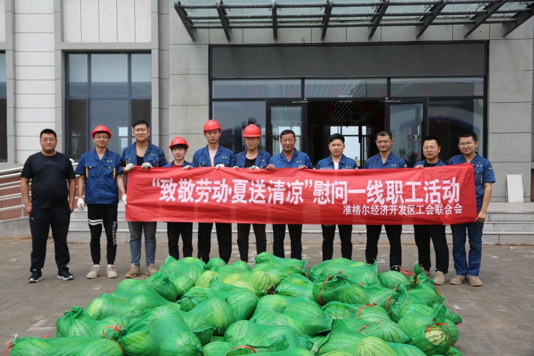 7月28日,準(zhǔn)格爾經(jīng)濟(jì)開發(fā)區(qū)工會聯(lián)合會一行領(lǐng)導(dǎo)帶著濃濃的關(guān)懷慰問鐵辰公司一線職工,為大家送上了夏日的清涼。